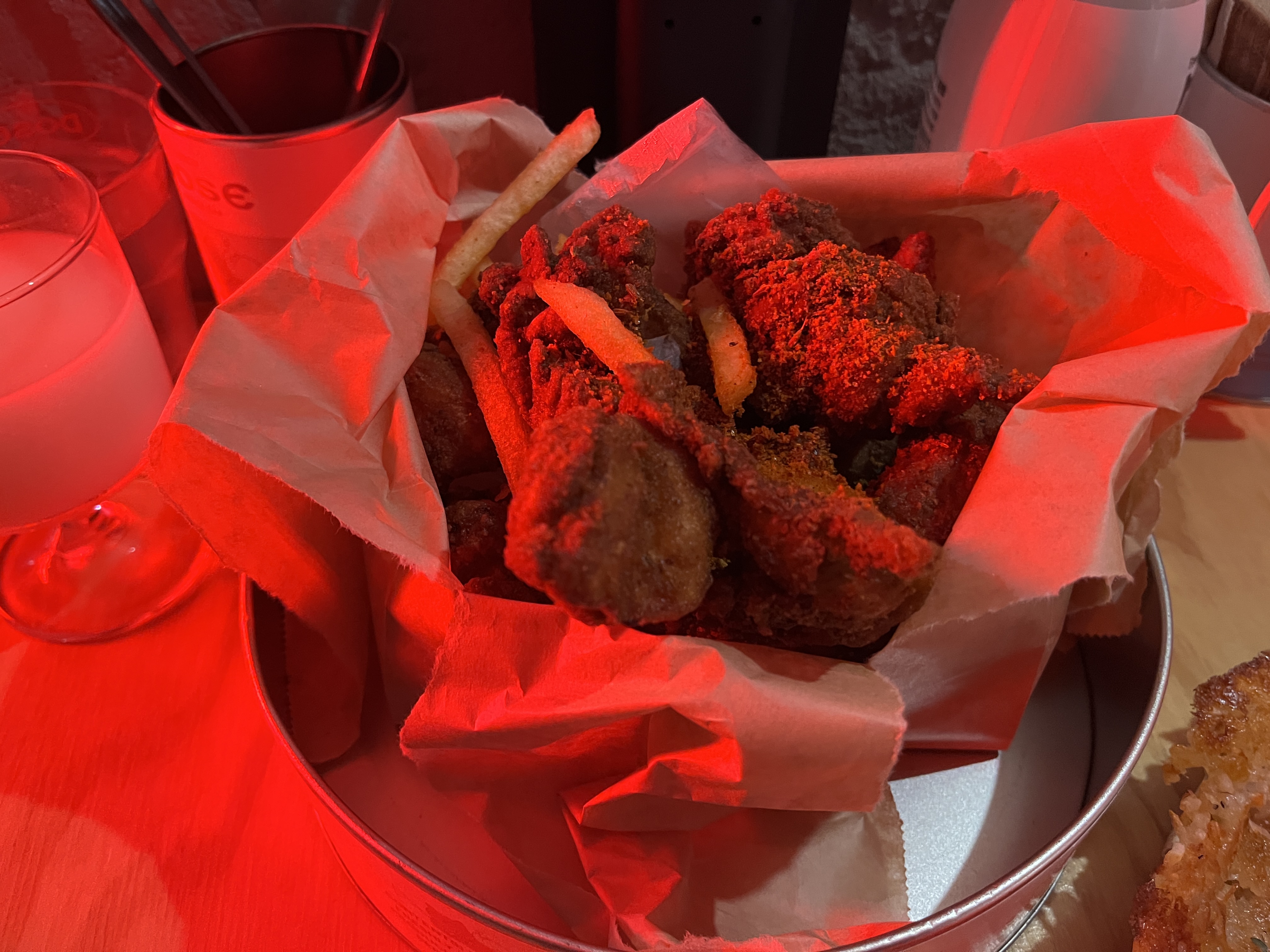 쯔란 맛이 잘 입혀진 후라이드 치킨입니다
