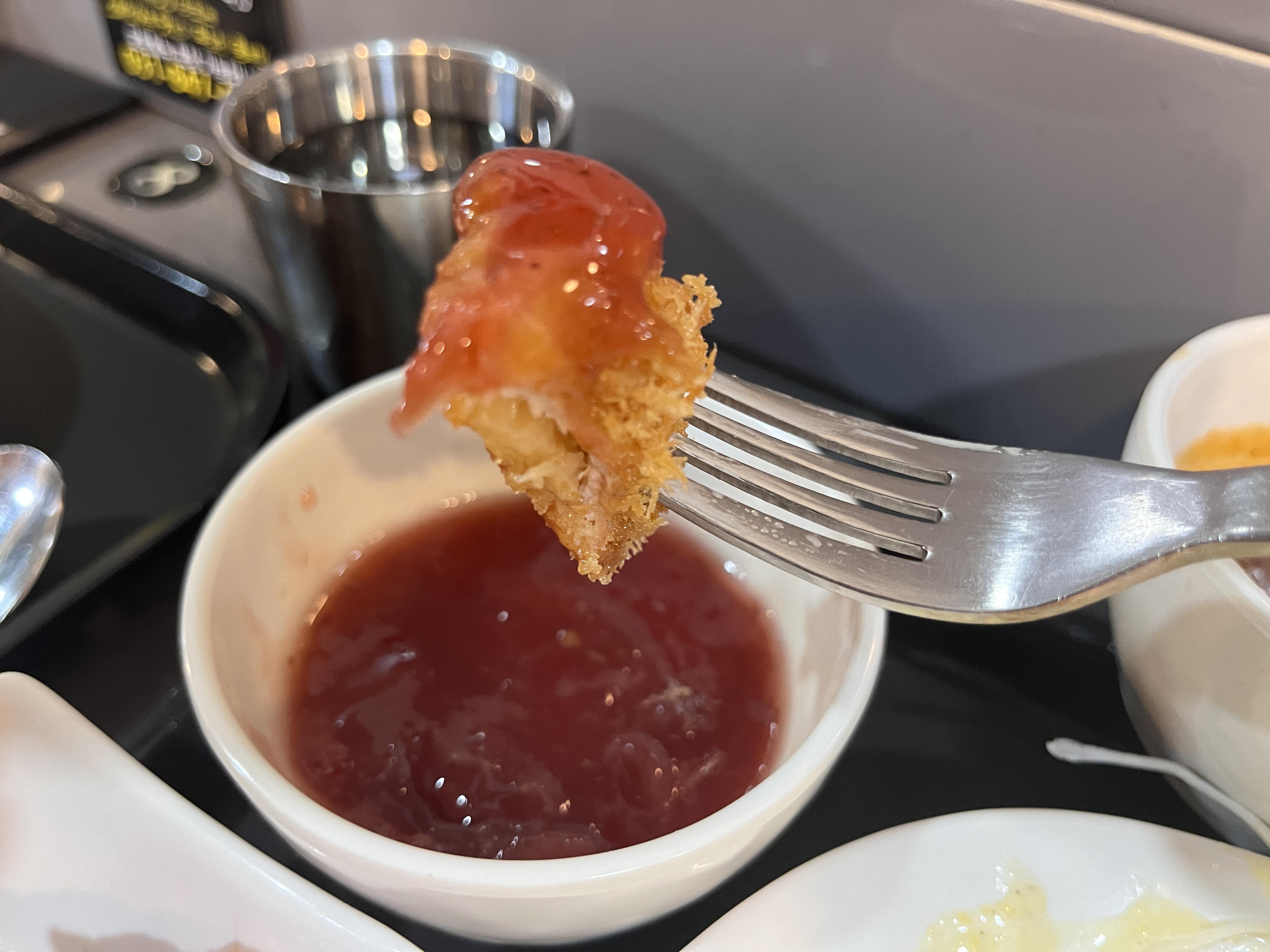 돈까스를 딸기쨈에 찍어 먹는 조합이라니,